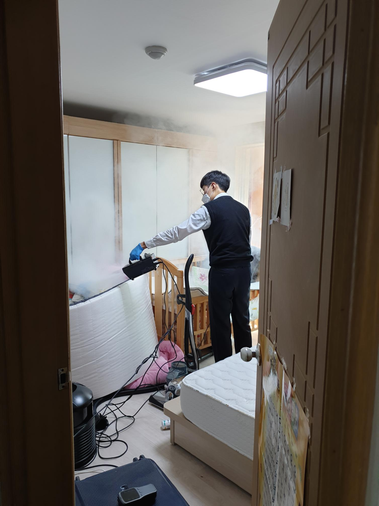 그러다 결국, 새로 이사 온 집에서 3월임에도 불구하고 모기를 내가 실제로 보고 잡긴 했지만, 모기가 물린 것인지 뭔지 모르겠는, 첫째 얼굴에 줄줄이 세 곳이 빨갛게 올라와서 청소라도 한 번 하기로 결심했다. 세스코 이런데를 부를까 하다가 그냥 청소로. 원인은 뭔지 모르겠지만 다음 날 피먹은 모기를 잡아서 왠지 모기였을 것 같기도 하고... 여튼. 계속 생기는 피부트러블의 원인이 눈에 보이지 않는 오염된 매트리스 때문은 아닐까 하는 생각에 청소를 받아봤다.