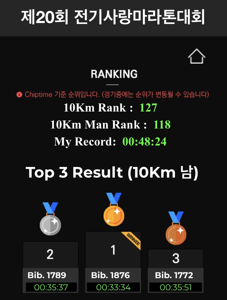 전체 참석자 기록도 알려주면 좋을 것 같은데, 이정도 정보만 알 수 있다. 달리면서 불현듯 든 생각이, 나의 직업, 데이터 하는 사람(...)과 관련해서 생각해봤는데, 체육 쪽 분야에서도 데이터 분석 전문가로 커리어를 키우든 이런 분야도 발을 담그면 재밌겠다 생각은 들었다.