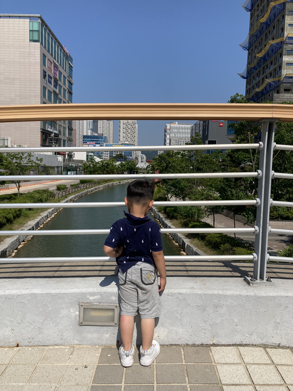 하온이가 이걸 기억할지 모르겠지만, 나는 너무 생생하다. 커널웨이를 쭉 따라 걷기만 하면 약속의 땅, 홈플러스가 나오는데, 바로 쭉 가지를 못했다. 조금 걸으면 목말라, 조금 걸으면 쉬마려워, 조금 걸으면 힘들어, 못걷겠어, 안아줘, 3콤보. ... 나도 너무 힘든데...ㅠㅠ 그래서 중간에서 여기로 빠졌다 저기로 빠졌다 했다. 그런데 중간중간 들렸던 곳에서 하온이는 순간순간 너무 즐거워하고 행복해 했다. 그때 찍은 사진들을 다시 보니 찐미소 이하온이다.